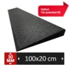 Vous pouvez utiliser la rampe «FIT PRO 20mm » parfaitement avec les dalles de sol sportif en caoutchouc d’une épaisseur de 20 mm. Elles ont une surface anti-poreuse et très facile à nettoyer.
